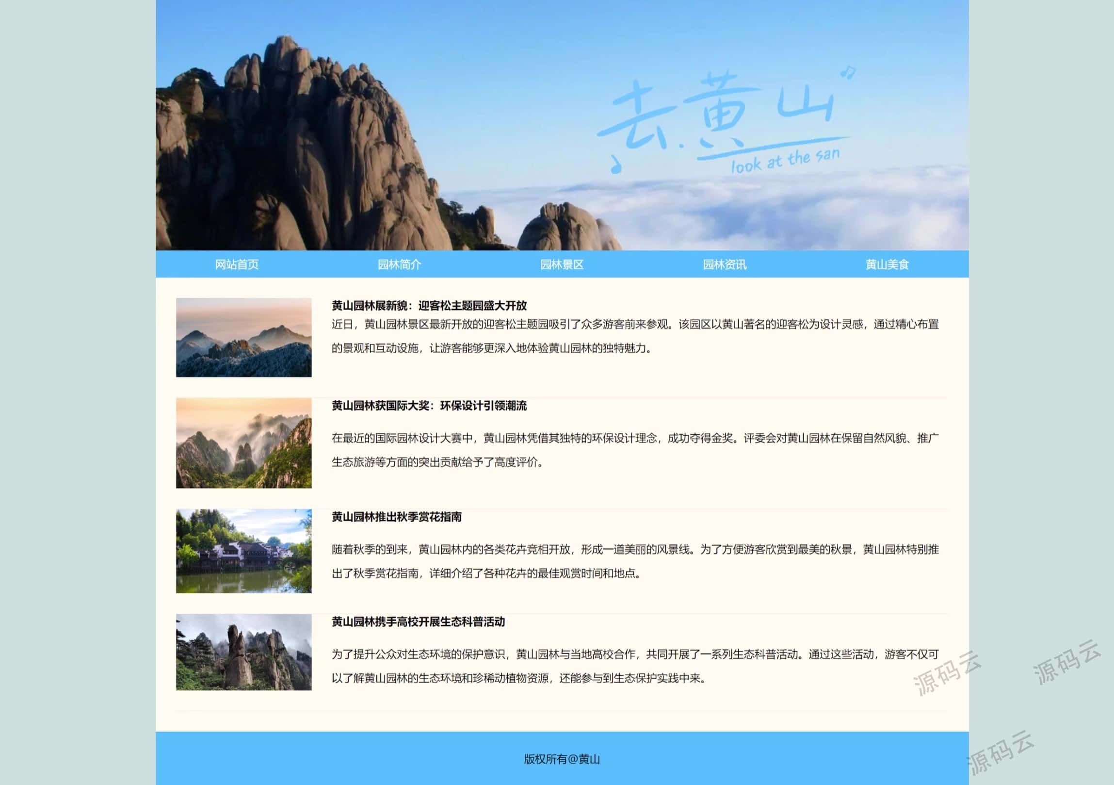三、丰富多彩的园林植物 黄山园林中的植物种类也非常多,既有高耸挺拔的松树,也有娇嫩多姿的桃花,又有五彩缤纷的花卉,在不同的季节里,黄山园林呈现出不同的景色。春天的漫山绿意,夏天的浓荫蔽日,秋天的红叶满山,冬日的银装素裹,每一季都有其独特的美。
