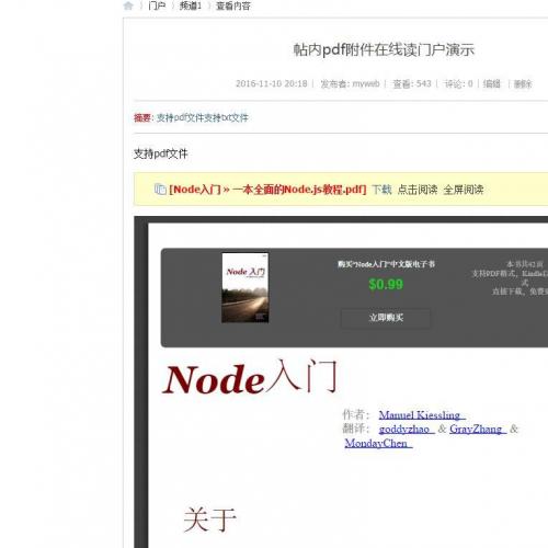 6、支持游客阅读pdf附件:附件会自动显示到帖子内容顶端或固定在原位置。门户文章页面中,附件自动插入到文章末尾。