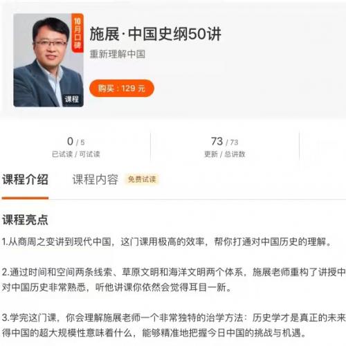 施展.中国史纲【完结】得到大师课 音频网盘发货